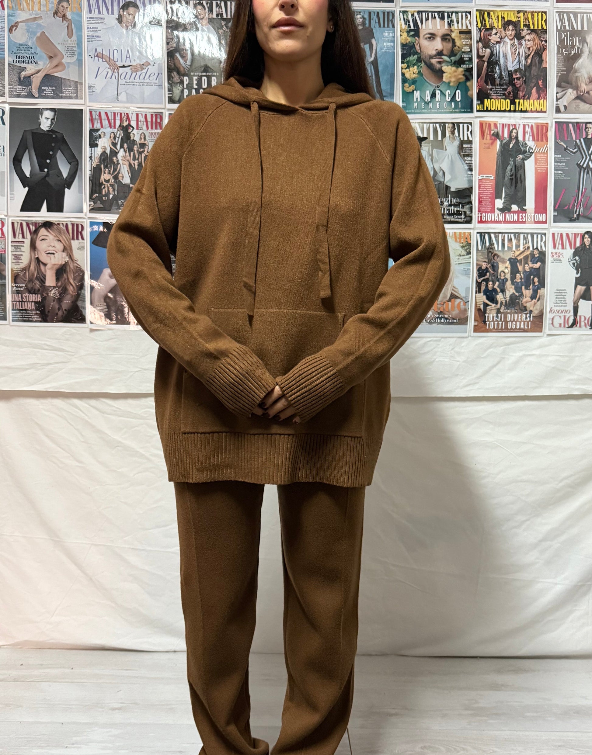 Maglia con cappuccio, tasca centrale e oversize